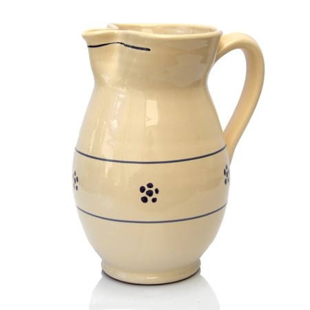Dal design sinuoso e mediterraneo, la Brocca Ursulo si ispira ai colori tipici del Salento. Prodotto interamente in Terracotta e smaltata color panna, la brocca ha sulla pancia dei caratteristici e semplici disegni blu che formano delle stelle.