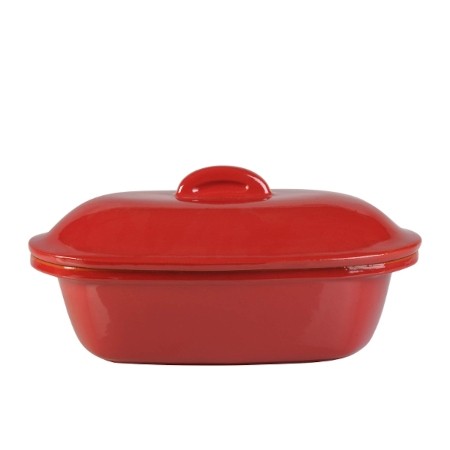 Il Cuoci arrosto Rossana dell'Azienda Colì è una elegante pirofila, dalla forma ideale per cucinare e servire a tavola carni arrosto. Realizzata interamente in terracotta, il Cuociarrosto Rossana esalta i sapori grazie anche ai fori presenti sul coperchio che consentono la fuoriuscita del vapore donando alla carne una crosta saporita. Inoltre si presta anche come cuocipane artigianale che ti permette di cuocere tutti i tipi di pane fatto in casa, esplorare diverse consistenze e sapori, proprio come il pane fatto a mano dai panettieri. Completamente smaltato e con colori naturali; Mentre l'esterno è caratterizzato da un color rosso amaranto, l'interno stupisce il colore naturale della terracotta. Come tutti i prodotti dell'Azienda Colì, gli smalti ed i colori utilizzati sono apiombici, quindi garantiti per uso alimentare, inoltre possono essere utilizzati sui fornelli, nel forno tradizionale e nel microonde. Prima dell'utilizzo bisogna immergere il Cuociarrosto in acqua fredda per circa 12 ore.