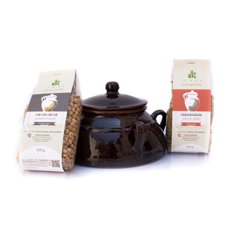 Idea regalo originale e sicuramente esclusiva, la Legumiera Bruna in Terracotta con i legumi caratteristici della zona Grecia Salentina, il cece di Zollino e la Lenticchia di Zollino.