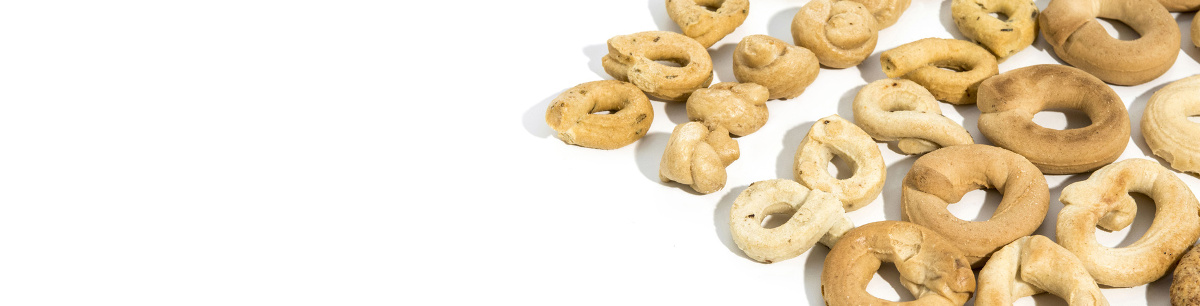 Dalla tradizine pugliese vi presentiamo i prodotti da forno pugliesi: Taralli fatti a mano, Frise salentine di grano duro e di orzo; per accompagnare antipasti o piatti tipici pugliesi.