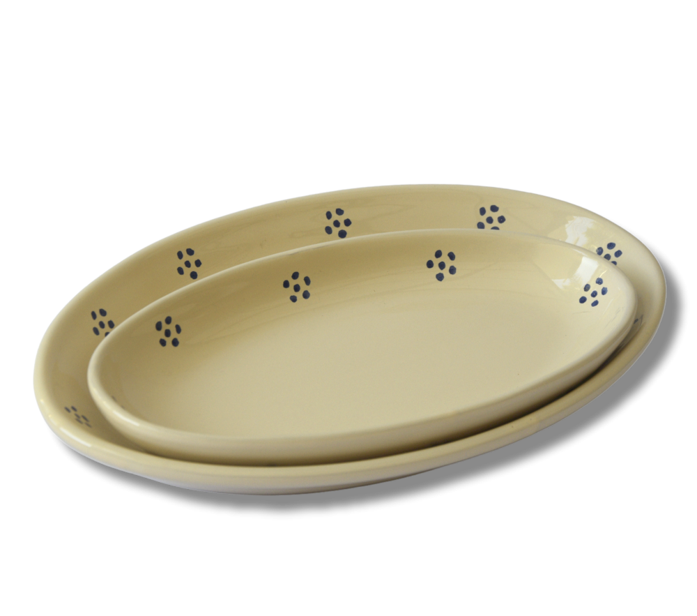 Il Set di piatti ovali Colì dallo stile semplice ed elegante, può essere utilizzato per ogni occasione. Perfetto per colazione, antipasti in comune o pranzo e cena. La forma ovale e le linee particolarmente morbide e sinuose conferiscono ai piatti da portata un aspetto assolutamente inconfondibile, mentre il materiale con cui vengono realizzati, la terracotta, li rendono particolarmente resistenti e capaci di sopportare anche frequenti lavaggi.