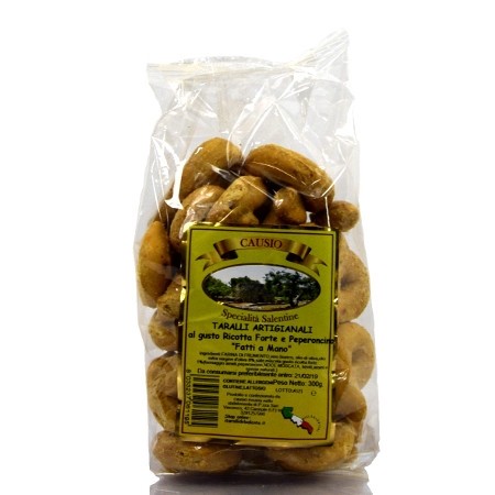 I taralli sono uno dei prodotti tipici più conosciuti e apprezzati della tradizione pugliese e salentina.Griko vi propone questi ottimi Tarallini al gusto di ricotta forte e peperoncino dalla loro inconfondibile friabilità. La ricotta forte ne esalta il sapore insieme al peperoncino.