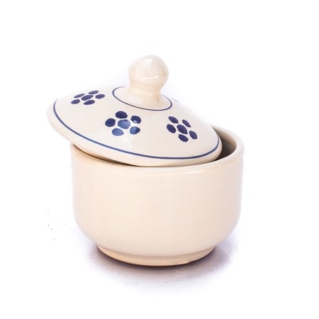 Prodotta completamente in terracotta, Il suo smalto color panna e la sua finitura con disegni semplici che richiamano le stelle, donano alla zuccheriera un tocco di artiginanto alla vostra tavola. La Zuccheriera Stelle dell'Azienda Colì ha un coperchio in terracotta per preservare lo zucchero, ciò denota l'alta attenzione che l'azienda offre nel realizzare i prodotti.